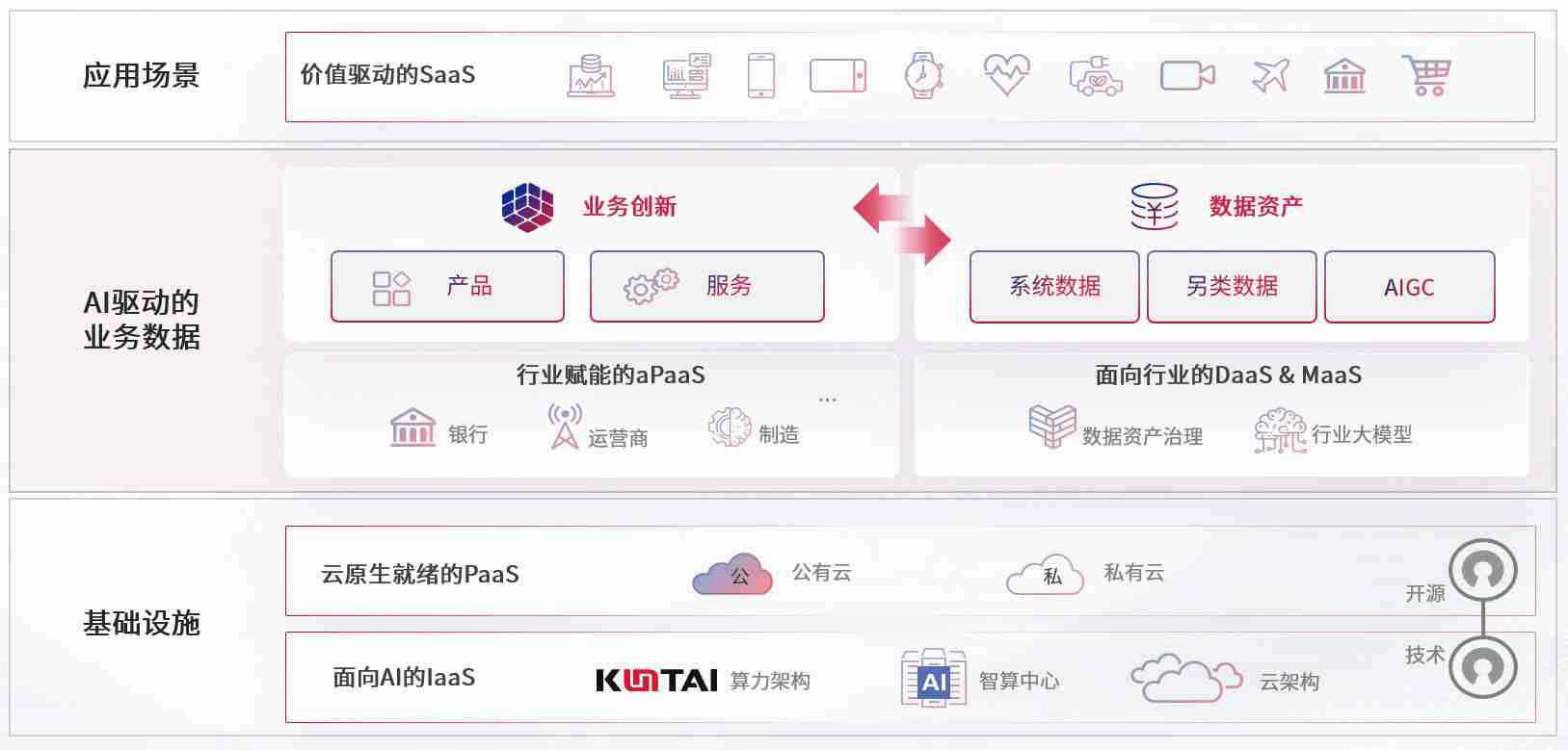 数字时代,,围绕企业数字化转型的关键要素,,1号娱乐数码开创性的提出数云融合战略和技术体系框架,,着力在云原生、、、、数字原生、、、AI原生和信创产业上架构产品和服务能力,,,,为处在不同数字化转型阶段的快消零售、、、、汽车、、、、金融、、、医疗、、、政企、、、、教育、、运营商等行业客户提供泛在的敏捷IT能力和融合的数据驱动能力,,构建跨界融合创新的数字业务场景和新业务模式,,助力企业级客户建立面向未来的核心能力和竞争优势,,,全面推动社会的数字化、、智能化转型升级。。